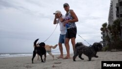 Национальная метеорологическая служба издала предупреждение об урагане для среднеатлантического штата Северная Каролина, где прибрежные города на уязвимой островной гряде могут оказаться на пути северной части шторма.