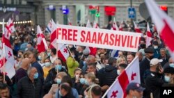 В Тбилиси состоялась многотысячная акция в поддержку бывшего президента Грузии Михаила Саакашвили. В начале октября его задержали в грузинской столице и отправили в тюрьму.