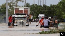 Отчаявшиеся жители районов, пострадавших от тайфуна, обрушившегося в пятницу на центральную часть Филиппин, пытаясь раздобыть продовольствие и воду, грабят магазины и грузовой транспорт.