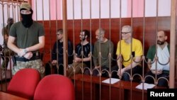 Пять европейских граждан, захваченных на востоке Украины, предстали перед судом, администрируемым поддерживаемыми Кремлем сепаратистами в Донецке, сообщили российские СМИ.