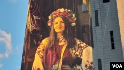 На официальное открытие фрески на стене бывшего «Дома Москвы» приехала и сама Татьяна Дроботя. Присутствующие обступили ее, фотографировали, расспрашивали, передавали пожелания победы воинам Украины.