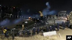 КЭННОН-БОЛЛ, СЕВЕРНАЯ ДАКОТА – Строительство трубопровода Dakota Access Pipeline в Северной Дакоте породило новую напряженность, когда протестующие против него демонстранты попытались обойти заблокированный мост, но были отброшены сотрудниками правоохранительных органов, которые применили водометы и, предположительно, слезоточивый газ.