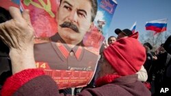 Согласно результатам опубликованного в 2013 году доклада организации Carnegie Endowment for International Peace, со времени распада Советского Союза число россиян, поддерживающих Сталина, увеличилось, причем, отмечается определенная взаимосвязь между «реабилитацией Сталина в России и президентством Владимира Путина».