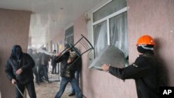 Не менее 100 пророссийских сепаратистов штурмуют здание МВД в городе Горловка на востоке Украины. Об этом сообщил в понедельник очевидец событий агентству Reuters.