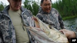На прошлой неделе Кремль опубликовал видео ролик, на котором Путин позирует в камуфляже и солнечных очках, с удочкой и за рулем катера, в компании премьер-министра и министра обороны.