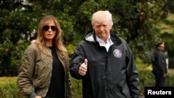 Президент США Дональд Трамп и первая леди Мелания Трамп во вторник днем прибыли в Корпус-Кристи, штат Техас. Президент решил на месте выяснить, что делается для спасения людей и ликвидации последствий урагана «Харви».