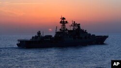 Российский военный корабль отразил нападение пиратов на контейнеровоз у западного побережья Африки, сообщило во вторник министерство обороны России.