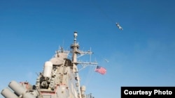«Дональд Кук» работает вместе с эсминцем «Портер» и кораблем «Ларами», который обеспечивает дозаправку эсминцев в ходе операций.