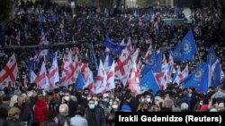Тысячи демонстрантов вышли на митинг в столице Грузии Тбилиси с требованием освободить заключенного в тюрьму бывшего президента Михаила Саакашвили.