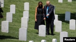 Президент США Дональд Трамп в четверг почтил память погибших военнослужащих, возложив американские флаги на несколько могил Арлингтонского национального кладбища, в преддверии Дня поминовения, который отмечается в последний понедельник мая.