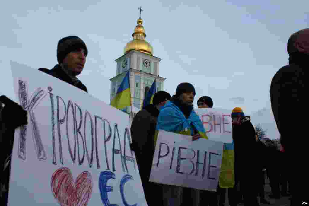 Избиение и разгон мирных акций в Киеве не подавили протесты. Митинги продолжаются