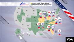 С учетом праймериз и кокусов, прошедших во вторник голосований в Мичигане, Миссисипи, Айдахо и на Гавайях, республиканцы сделали свой выбор кандидата в президенты в 23 из 50 штатов, а демократы – в 21 штате.