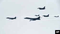 Южнокорейские СМИ сообщают, что в учениях на этой неделе могут принять участие бомбардировщики B-1B. Представитель ВВС США не смог подтвердить эти сообщения.