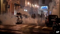 Столкновения также произошли в Милане, который взял на себя один из основных ударов пандемии COVID-19 в Италии.